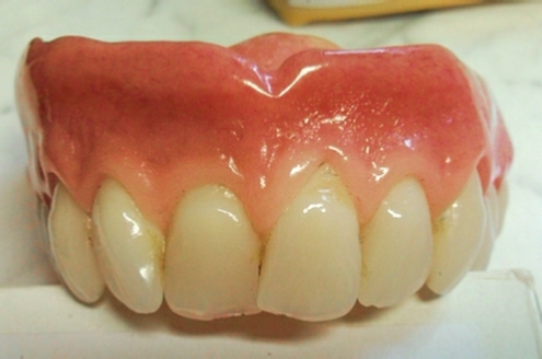Künstlich hergestellte Teile aus Metall, Kunststoff oder Keramik, die verlorengegangene Zähne oder Teile eines Zahnes ( Zahnkrone ) ersetzen sollen. Danach unterscheidet man Einzelzahnersatz, Kronen bei Verlust von Zahnhartsubstanzen, Brücken bei Verlust eines Zahnes oder einer Zahngruppe, partieller Zahnersatz bei Verlust mehrerer Zähne und Zahngruppen und totaler Zahnersatz bei Verlust einer ganzen Zahnreihe im Ober-